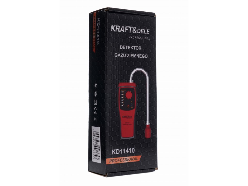 Híres Kraft&Dele márkájú professzionális földgáz- és LPG-érzékelő, a KD11410 modell, a gázfőzők és teljes telepítések szivárgásainak detektálására szolgál. A termék otthoni és professzionális felhasználásra egyaránt ideális.