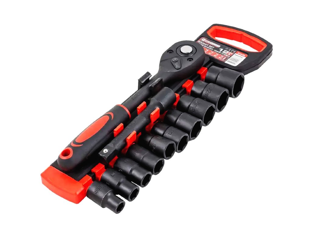 FORCEKRAFT 1/2"-os dugókulcs készlet racsnival és hosszabbítóval, 12 részes, 10–24 mm