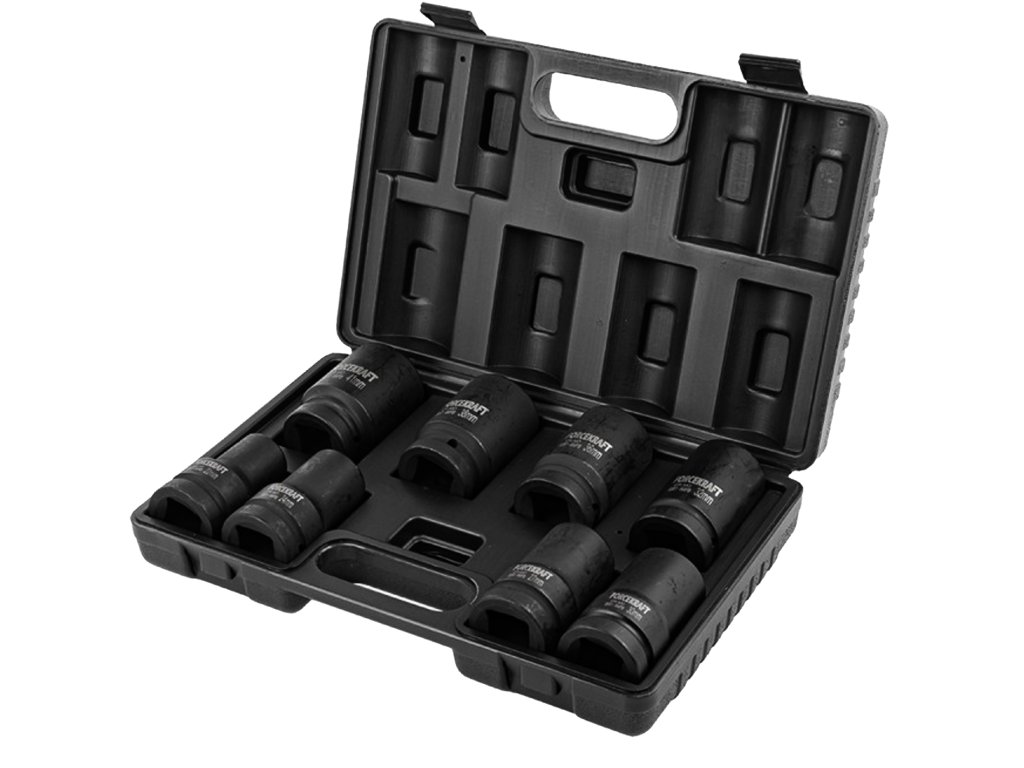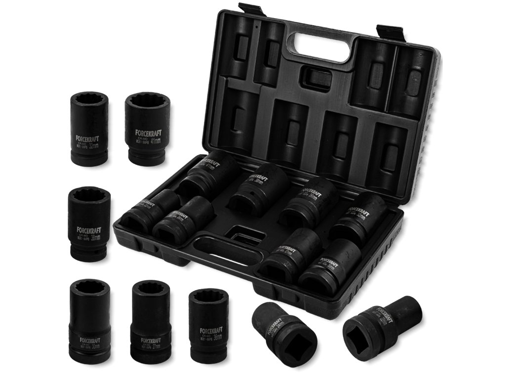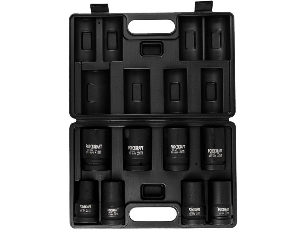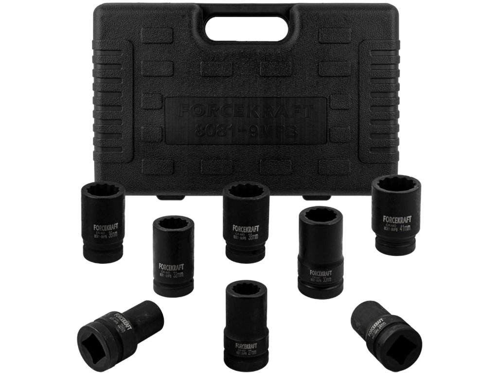 Forcekraft 1"-os mély beütődugókulcs készlet, 9 részes, 12 és 4 oldalú