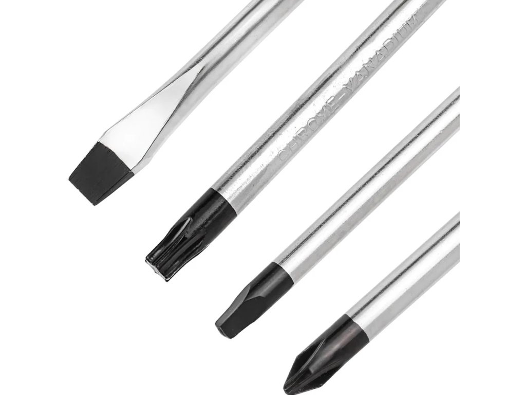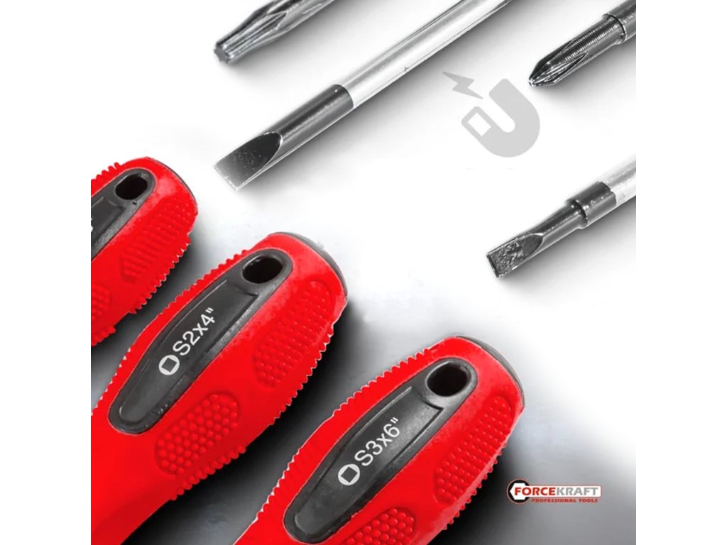 Minden csavarhúzó mágneses heggyel van felszerelve, amely szilárdan tartja a csavarokat és a csavaranyákat munka közben.