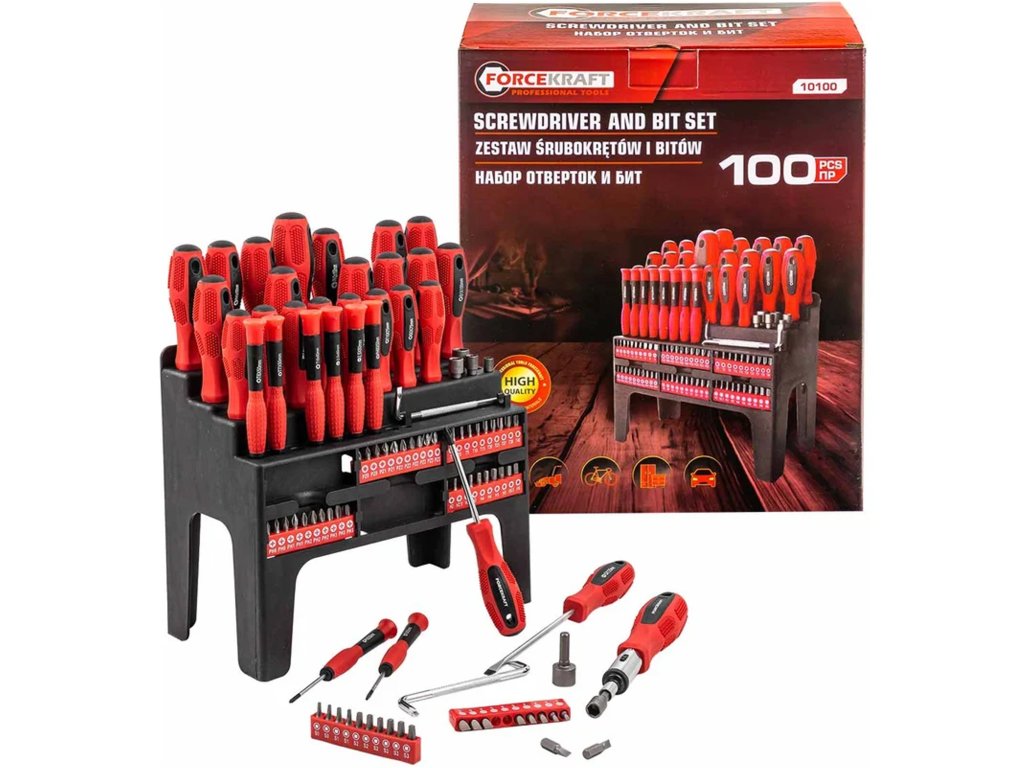 Forcekraft csavarhúzó és bitkészlet, 100 darabos, állványban