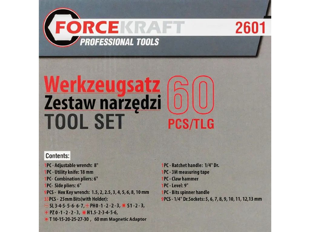 Akár biciklit javítasz, polcot szerelsz össze, vagy szekrényt állítasz össze, a FORCEKRAFT szerszámkészlet alkalmas a feladatra. Remek ajándékötlet minden barkácsolónak!