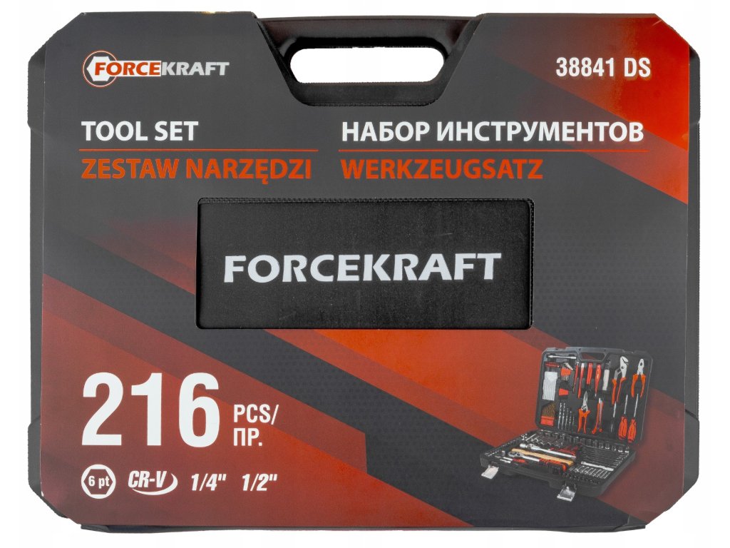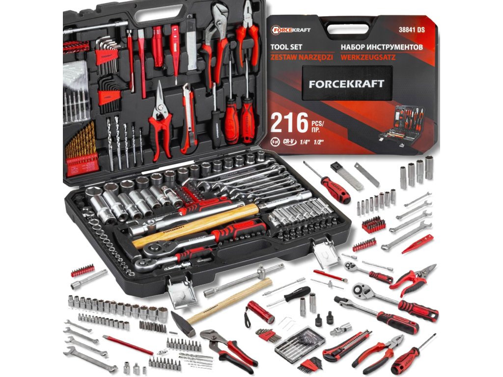 FORCEKRAFT Nagy villáskulcs és szerszámkészlet, 216 részes, szerszámosládával