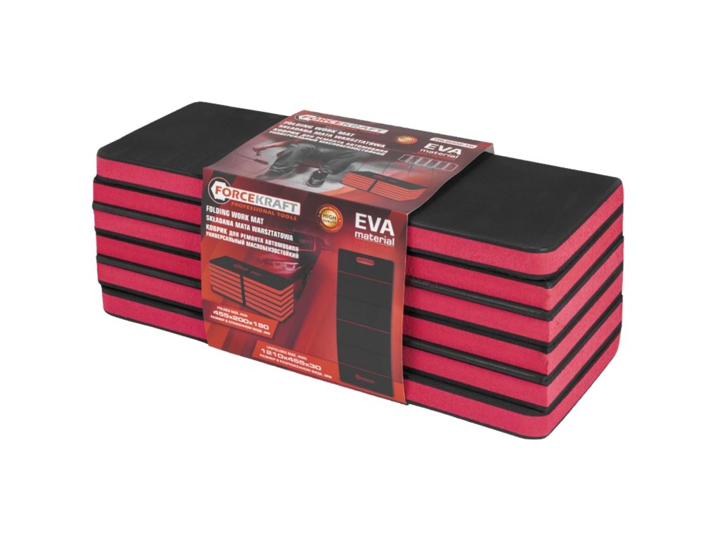A Forcekraft összecsukható műhelyszőnyeg univerzális eszköz mindazok számára, akik autókon, kertben, garázsban vagy otthon dolgoznak. Az olajjal, benzinnel és vízzel szembeni magas ellenállásának köszönhetően a szőnyeg alkalmas intenzív műhelyi használatra és sürgősségi javításokra a terepen.
