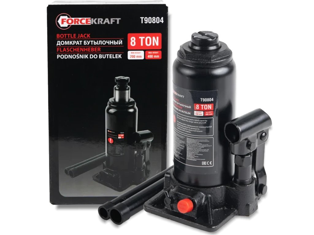 A FORCEKRAFT hidraulikus palackemelő 8 tonna teherbírással megbízható eszköz személygépkocsik és haszongépjárművek, mezőgazdasági és ipari gépek emelésére . Biztonsági szeleppel felszerelve, biztonságos munkavégzést biztosít túlterhelés veszélye nélkül.
