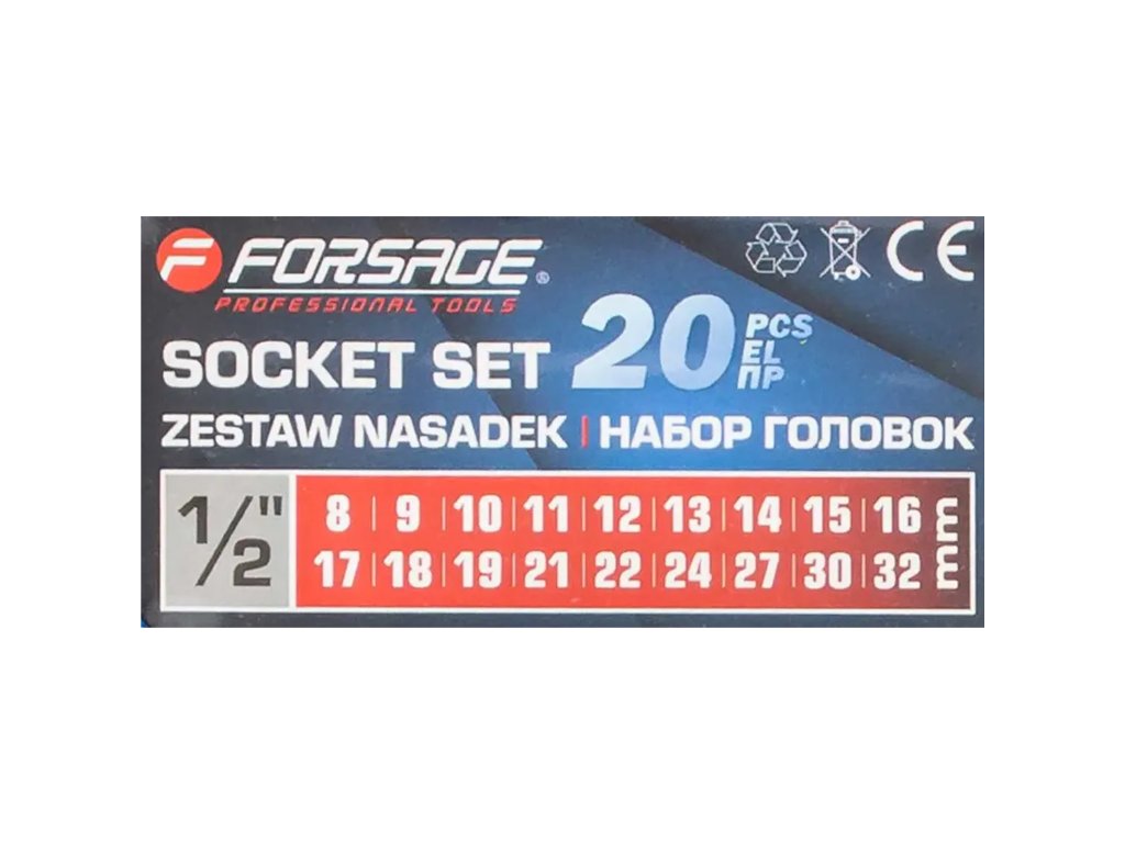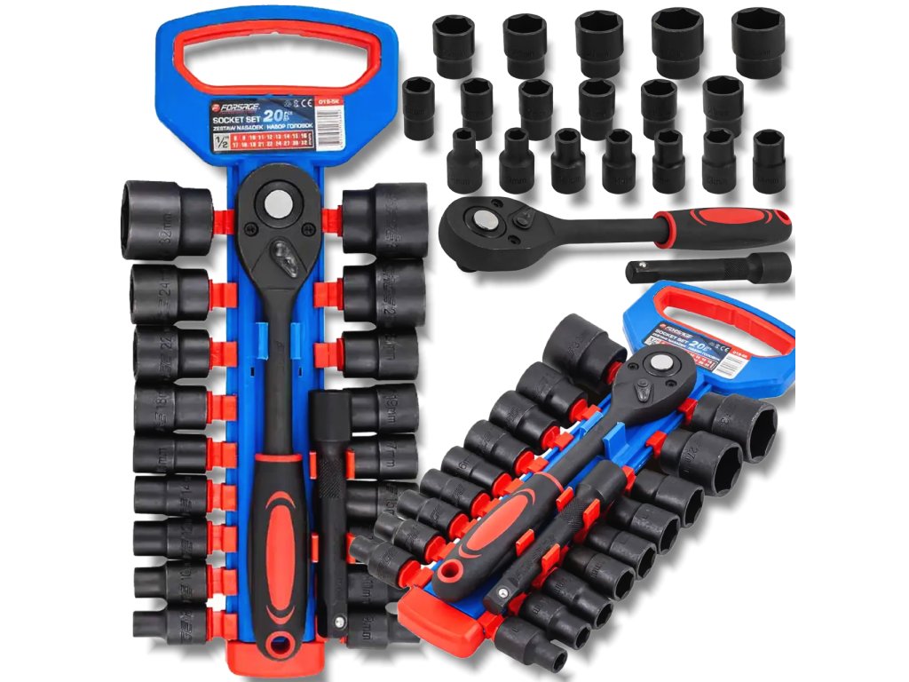 FORSAGE 1/2"-os dugókulcs készlet 20 darabos racsnival és hosszabbítóval 8–32 mm