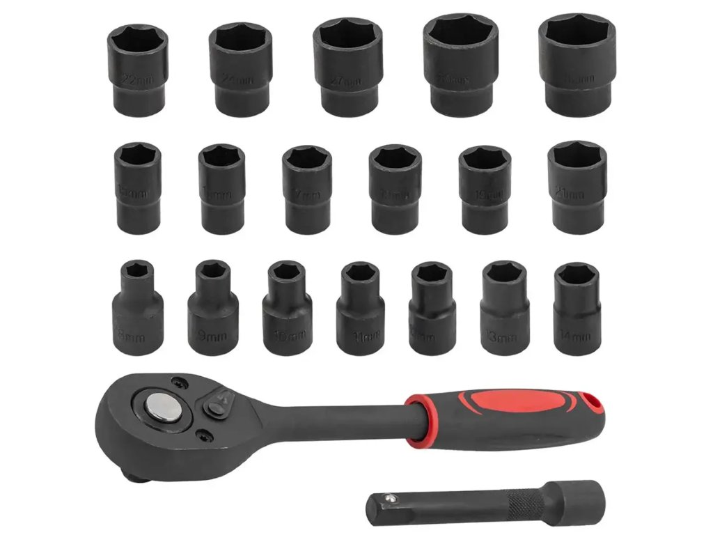 A komplett, 20 darabos készlet nélkülözhetetlen felszerelés minden műhely, autójavító műhely vagy otthoni garázs számára. A széles fejméret-választéknak és a robusztus kialakításnak köszönhetően kényelmes és biztonságos munkát tesz lehetővé számos mechanikai és autóipari alkalmazásban.