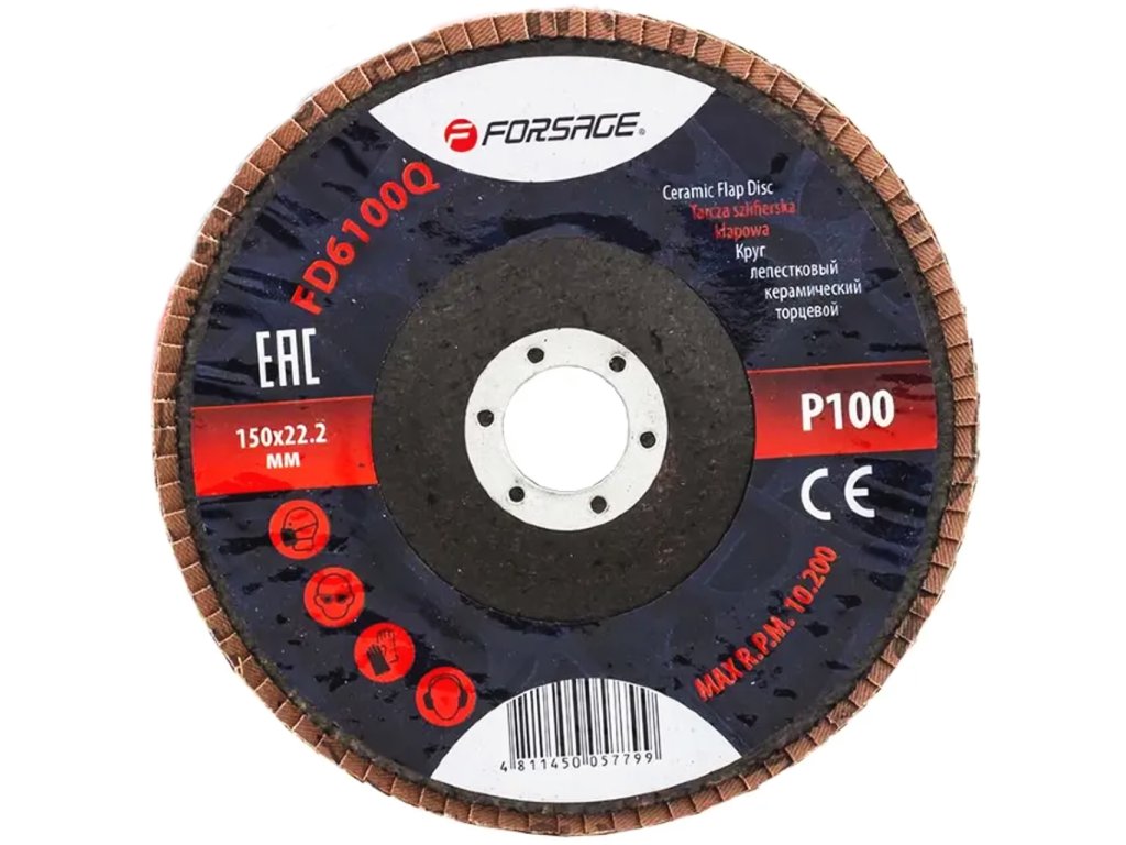 FORSAGE legyezőlapos csiszolótárcsa 150 x 22,2 mm, P100