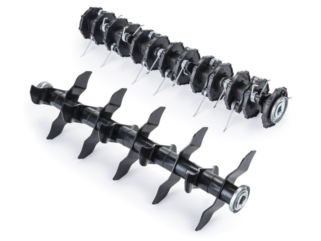 - A készülék két különálló hengert biztosít, amelyek lehetővé teszik a levegőztetés és vertikálás külön végrehajtását, biztosítva ezáltal a precíz gyepgondozást.