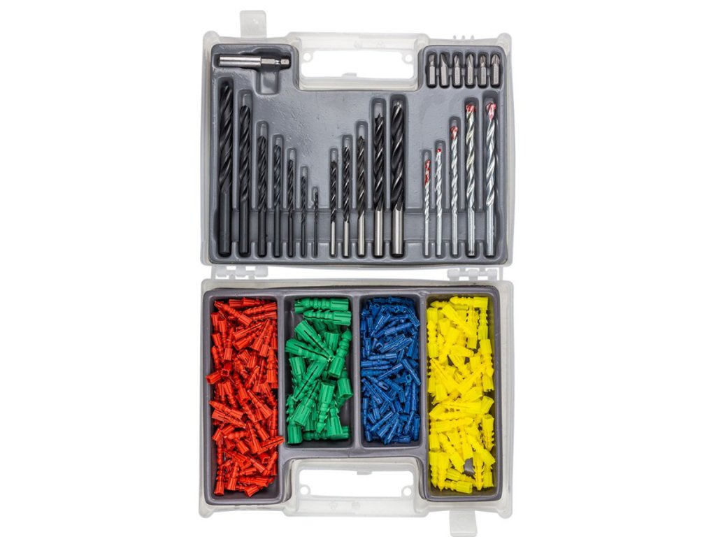 Fúró- és bitkészlet, 300 részes, fémhez, fához és betonhoz, HSS HMTC