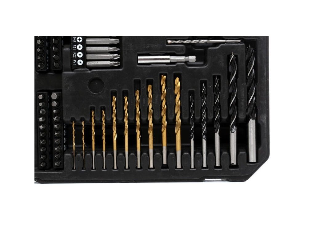 A készlet része a hatpontos dugókulcsok 5–13 mm-es méretekben, valamint a teljes bitkészlet, amely tartalmaz lapos, PH kereszthorny, PZ, négyzetes, imbusz és torx biteket. Mind CrV acélból készülnek és továbbkeményítettek. A 1/4 hüvelykes szabványos rögzítés lehetővé teszi, hogy bármilyen csavarhúzóval vagy fúróval használható legyen.
