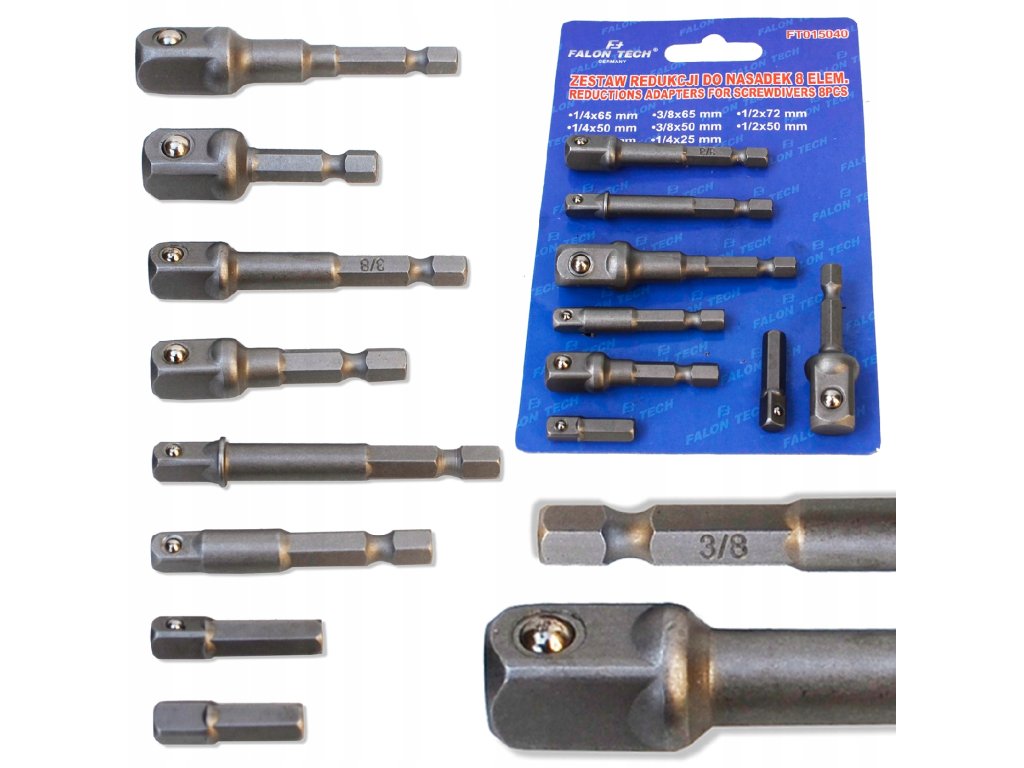 Ez a fúrógép adapter és szűkítő készlet lehetővé teszi a kiegészítők használatát fúrógépekkel és akkus csavarhúzókkal. Az ellenálló szerszámacél konstrukciónak köszönhetően hosszú élettartamot és magas ellenállást garantál. A készlet különböző méretű adaptereket tartalmaz, ami lehetővé teszi a hatszögletű rögzítéssel rendelkező kiegészítők használatát.