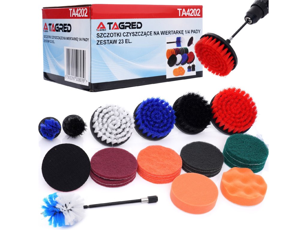 Mega speciális takarító és polírozó szett TAGRED ideális segítőtárs mindenféle szennyeződés eltávolításához. A különböző alakú és méretű kiegészítőknek köszönhetően könnyedén hozzáférhet a legnehezebben elérhető, nagyon piszkos helyekhez. A szett tartalmaz maximális hatékonyságú kaparó párnákat!