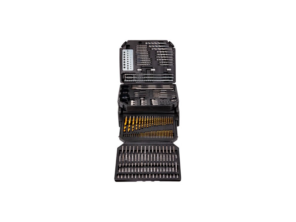 Professzionális készlet, amely 300 elemet tartalmaz, ideális bármilyen fúrási, vágási és csavarozási feladatokhoz. Ez a készlet alkalmas mind a szakemberek, mind a házi barkácsolók számára. Minden elem egy funkcionális műanyag táskában van elhelyezve, amely megkönnyíti a tárolást és a szállítást.