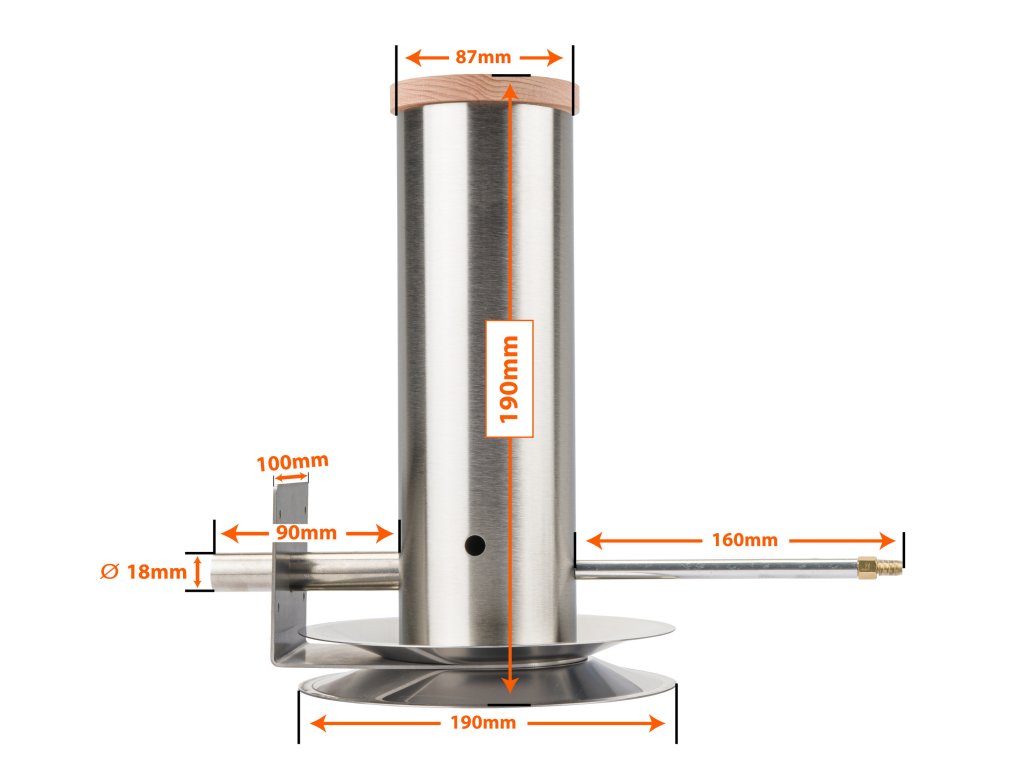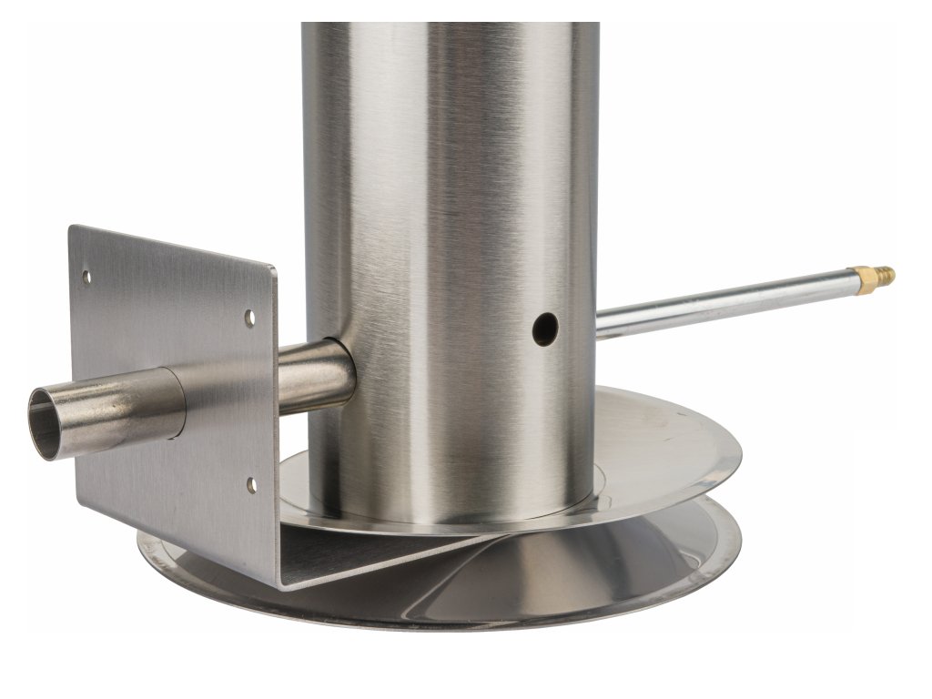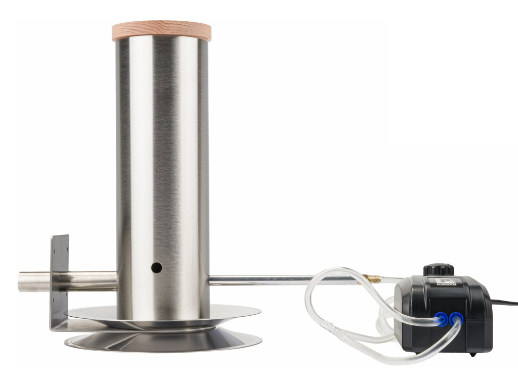 - A fúvóka ideális szögben van behelyezve a füstölőbe, ami növeli a füst hatékony áramlását a forró forgácsokból.