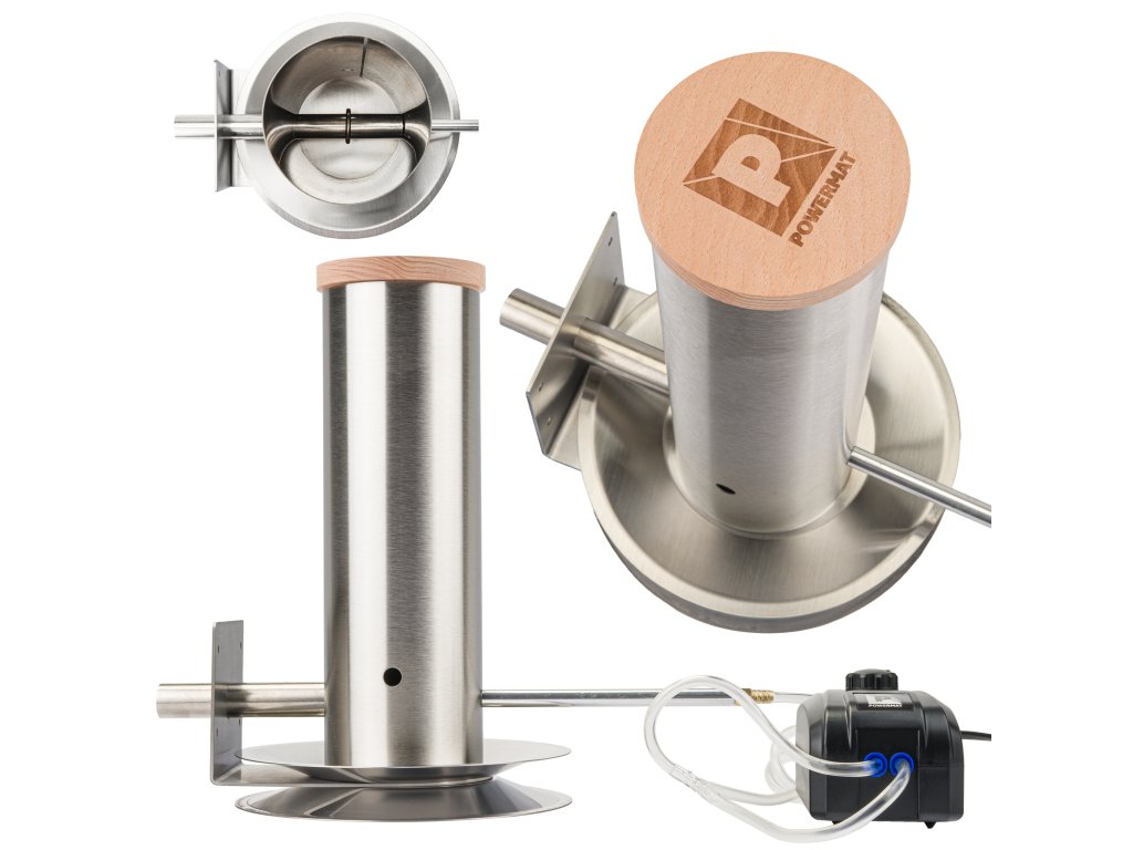 - A keletkező füst mennyiségének precíz beállítása lehetővé teszi a termékek túlzott savasodásának elkerülését. A pumpa egy különleges, integrált csövön keresztül csatlakozik, amely levegőt juttat a rendszerbe.