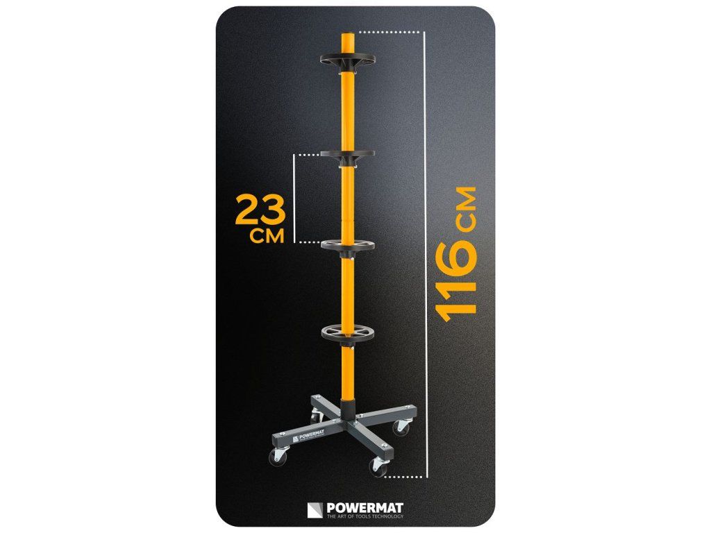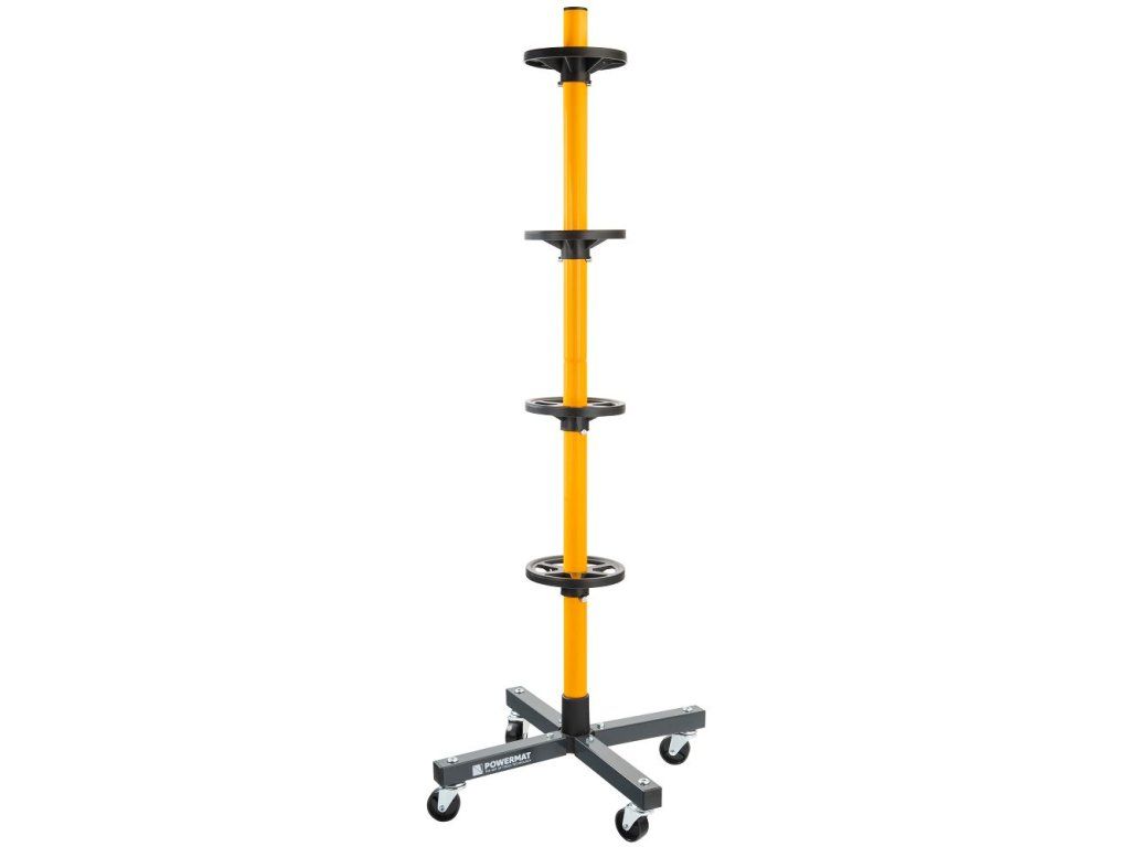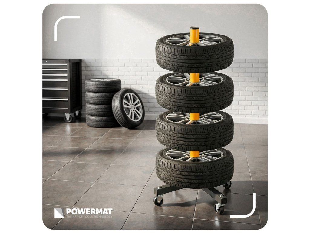 A praktikus autógumi-tároló állvány ideális megoldás a teljes gumiabroncsszett áttekinthető és biztonságos tárolására. Akár 4 kereket is tárolhat egy helyen, deformáció és felni sérülés veszélye nélkül. A négy kerékkel ellátott mozgatható konstrukciónak köszönhetően az egész készletet könnyedén, felesleges erőfeszítés nélkül mozgathatja. A lehajtható kialakítás ráadásul helyet takarít meg a garázsban vagy a műhelyben, amikor éppen nem használja az állványt.