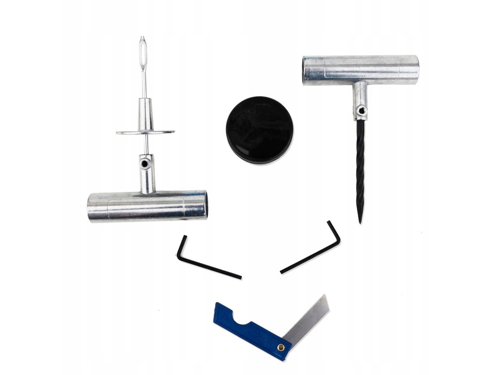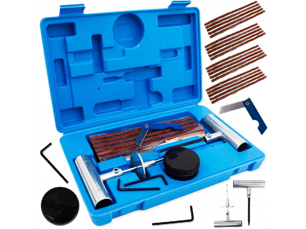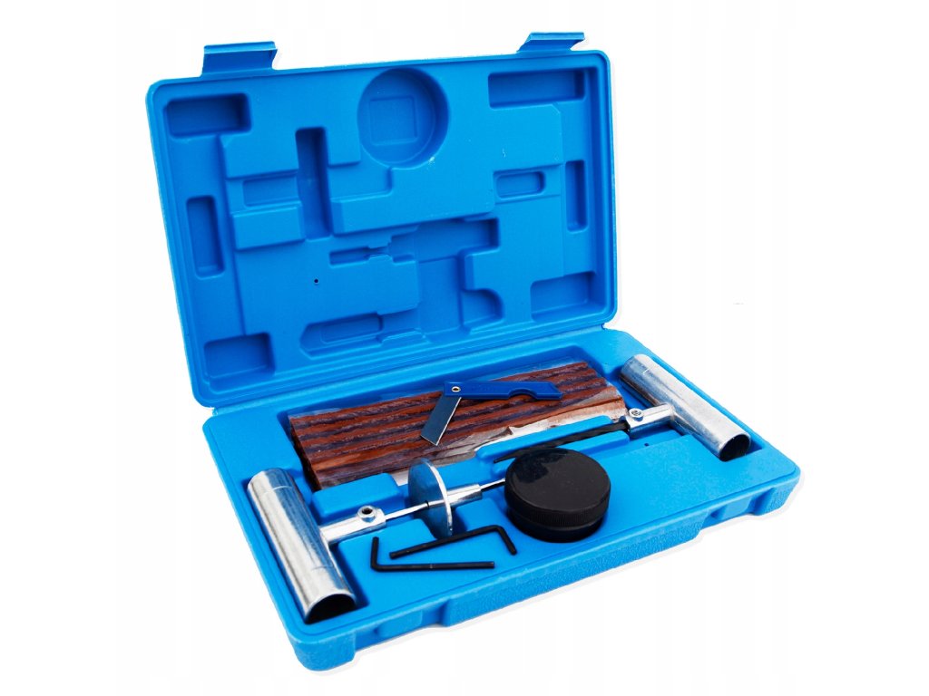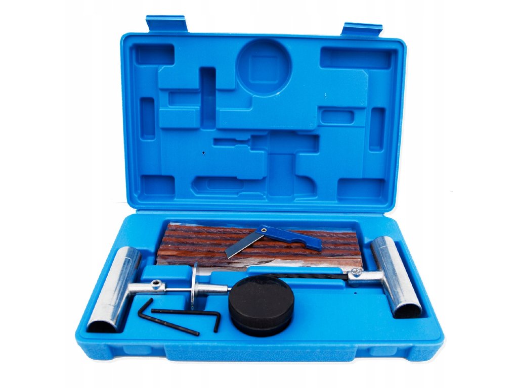 Gumi javító készlet gyors defektjavításhoz ideális megoldás az azonnali javításokhoz az úton. Ez a univerzális készlet lehetővé teszi a sérült gumiabroncs szétbontás nélküli javítását. A komplett készlet 27 db elemet tartalmaz, beleértve a javítózsinórokat, a kést, a fúróeszközt és egy praktikus átalakító dobozt. Személygépkocsikhoz, SUV-okhoz és 4x4-es járművekhez is alkalmas, így mindig készen áll a gumiabroncs problémák gyors és egyszerű megoldására.