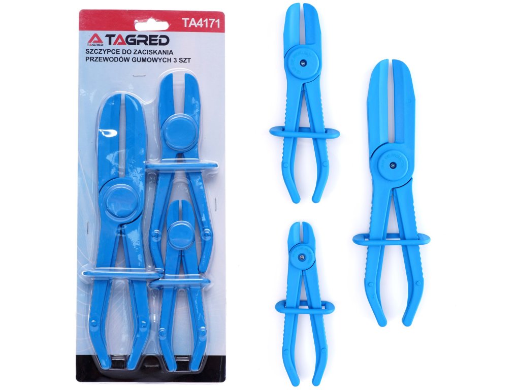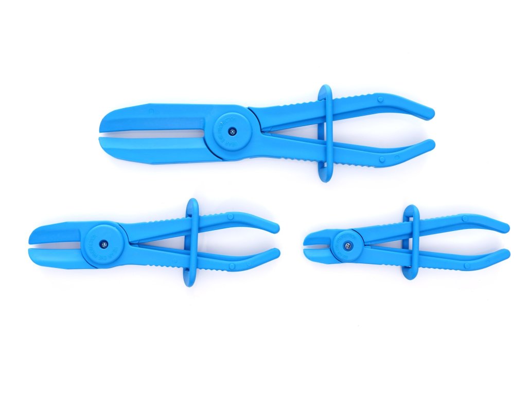 A csomag 3 darab üzemanyagcső összenyomó fogót tartalmaz, melyek alkalmasak gumi és rugalmas csövekhez.