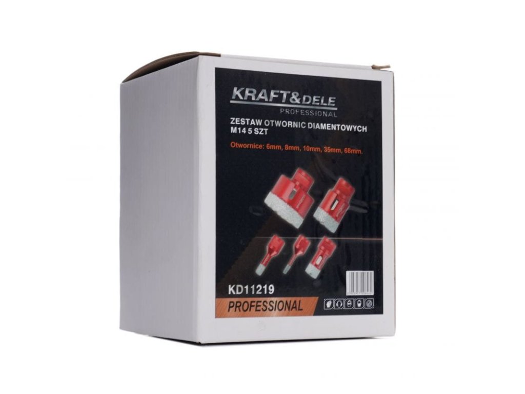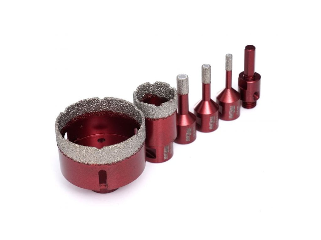 A Kraft&Dele márkájú gyémántmagfúró készlet, KD11219 modell, ütés nélküli, nedves fúráshoz használható gresz-, kerámia-, márvány-, porcelán- és kemény burkolólapok fúrására.
