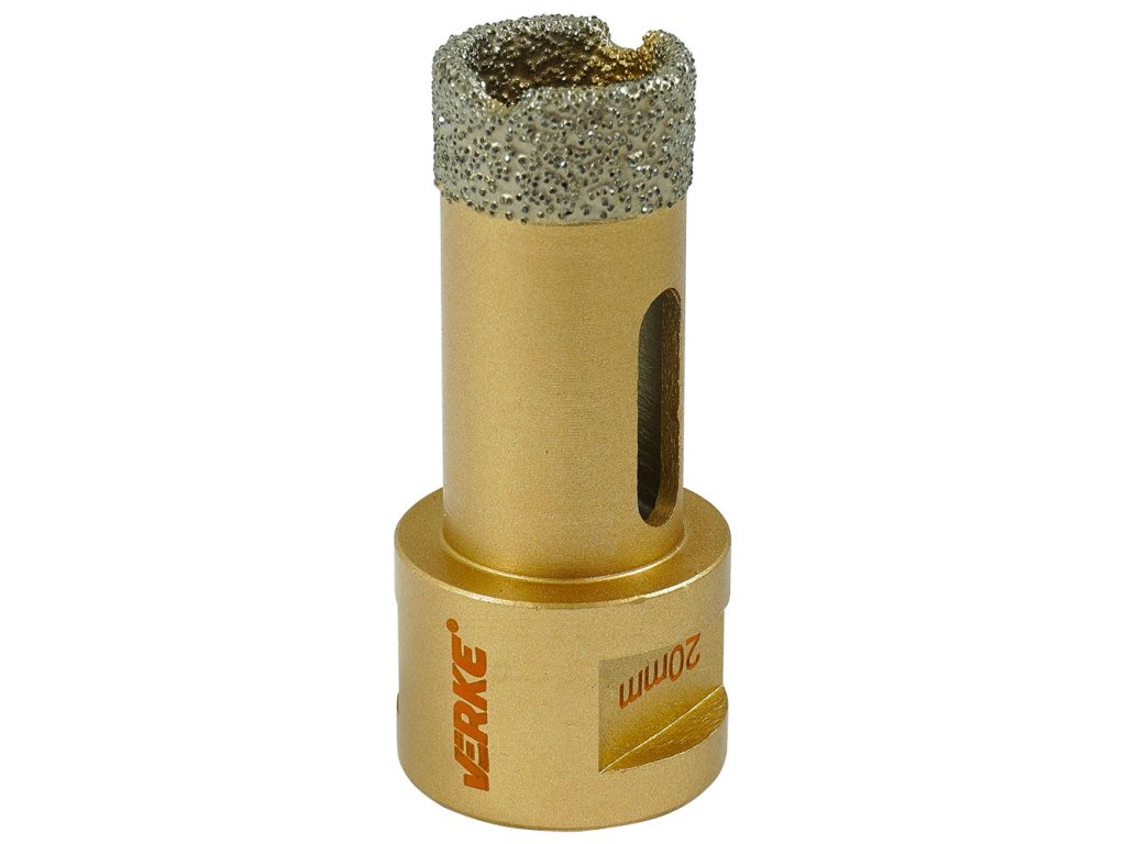 Gyémánt lyukfúró fi 20 mm, M14-es menettel ellátva, amely az oldalszögletű csiszológépekre rögzíthető. Ideális nyílások készítésére olyan anyagokban, mint a: gres, kerámia csempe, klinker, máz és természetes kő.