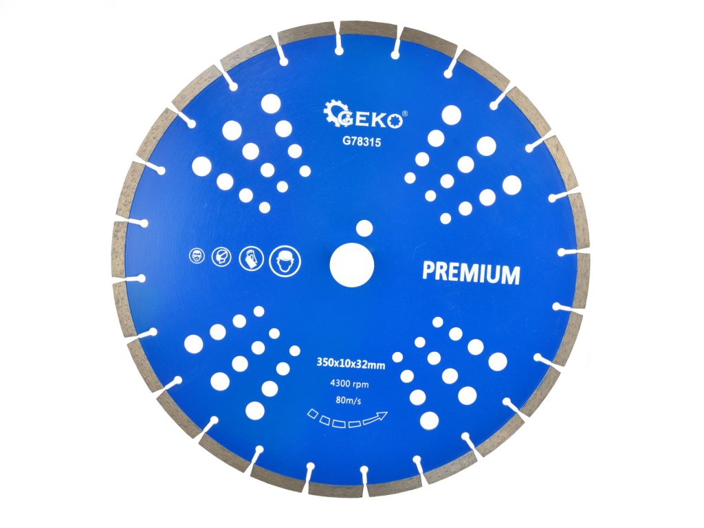 Gyémánt vágótárcsa 350x10x25,4mm szegmentált GEKO PREMIUM lézer G78315