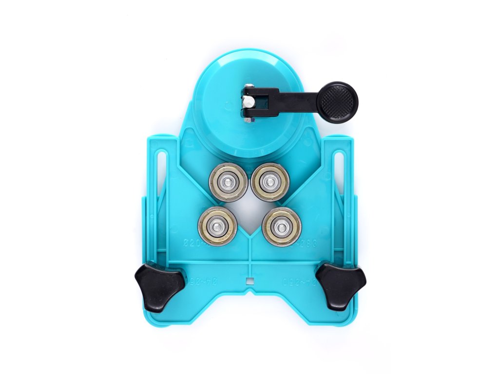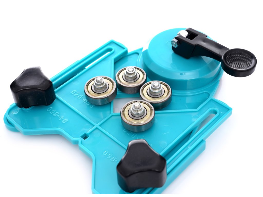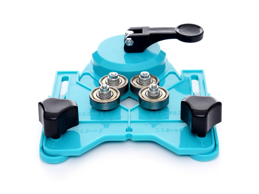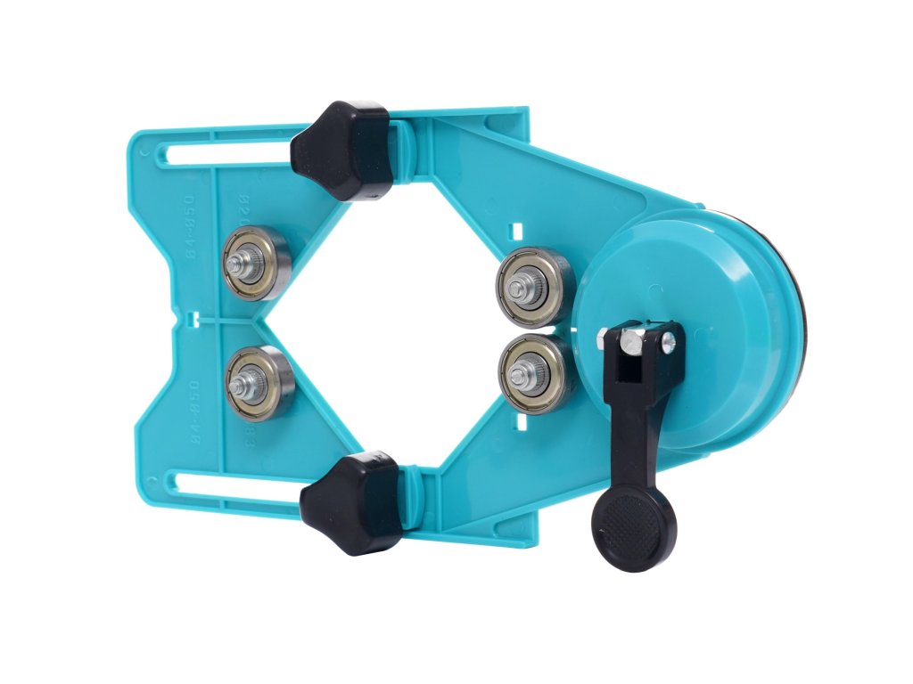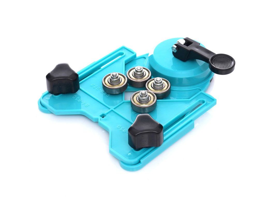 A vezető készülék fő előnyei közé tartozik a fúróméret egyszerű és gyors beállítása, amely lehetővé teszi a gyors alkalmazkodást 4 és 83 mm közötti átmérőjű fúrókhoz. Ezenkívül tartalmaz négy csapágyat a maximális stabilitás érdekében, valamint erős vákuumos tapadót, amely biztosítja a biztonságos és erős tartást fúrás közben.