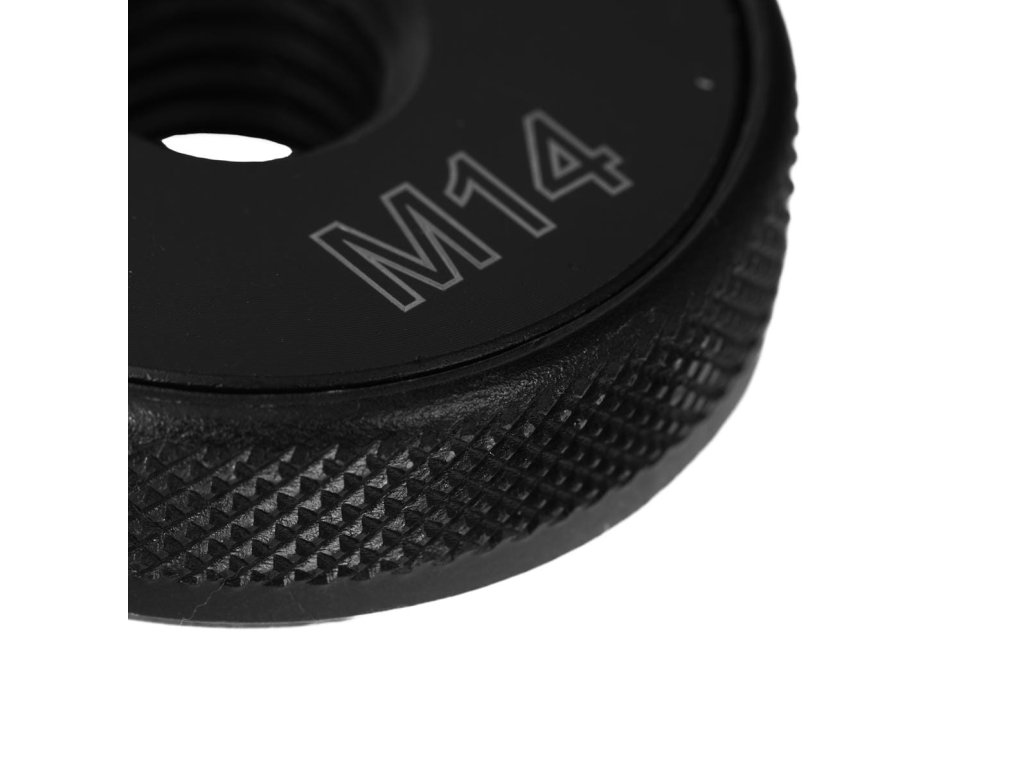 Ez a gyorsrögzítő anya kompatibilis minden M14-es főorsóval ellátott szögcsiszolóval, legyen az kisméretű (115 mm, 125 mm, 150 mm) vagy nagyméretű (180 mm, 230 mm, 300 mm), függetlenül a gyártótól.