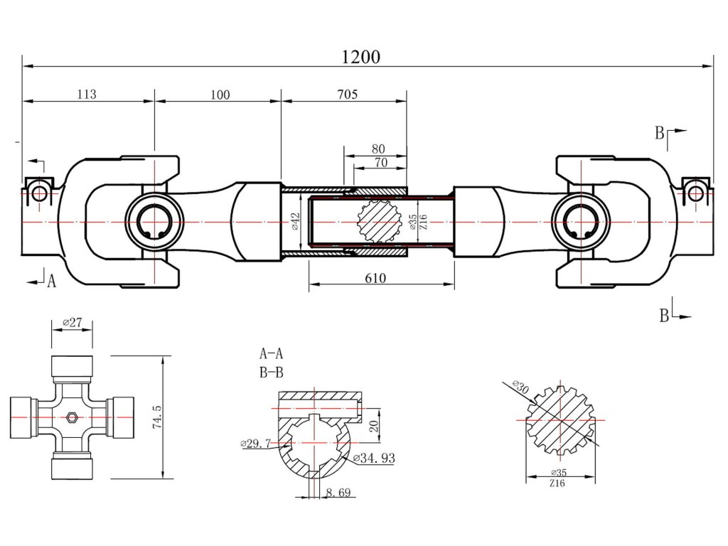 - Nem összecsukható tengely hossza: 1200 mm