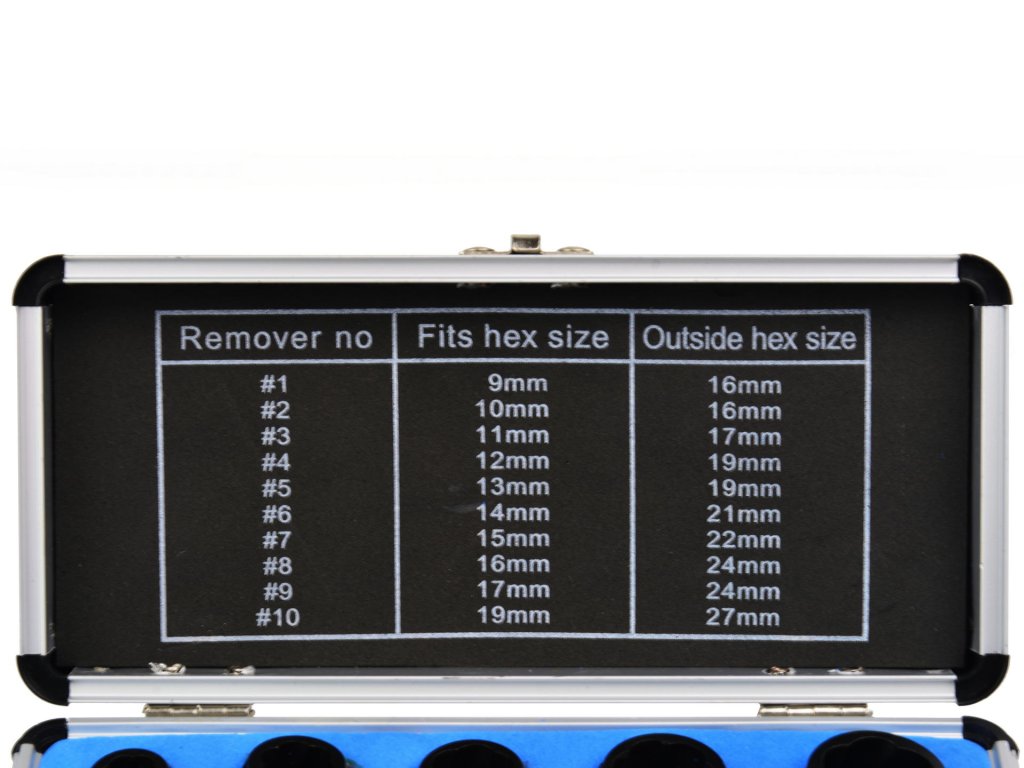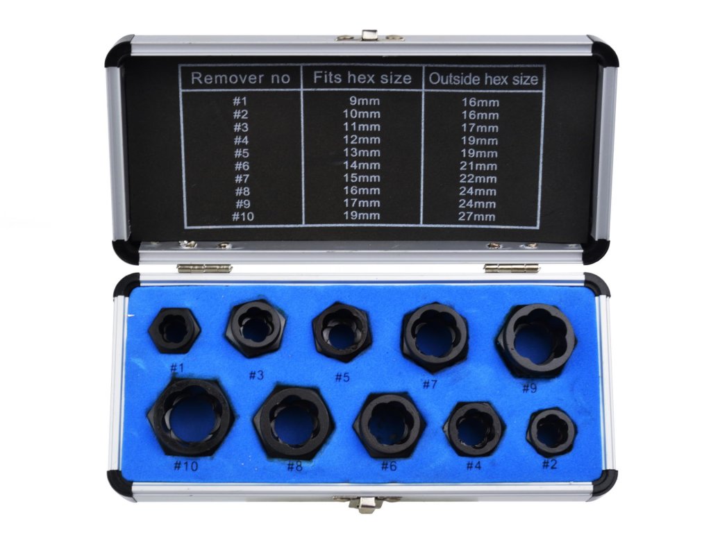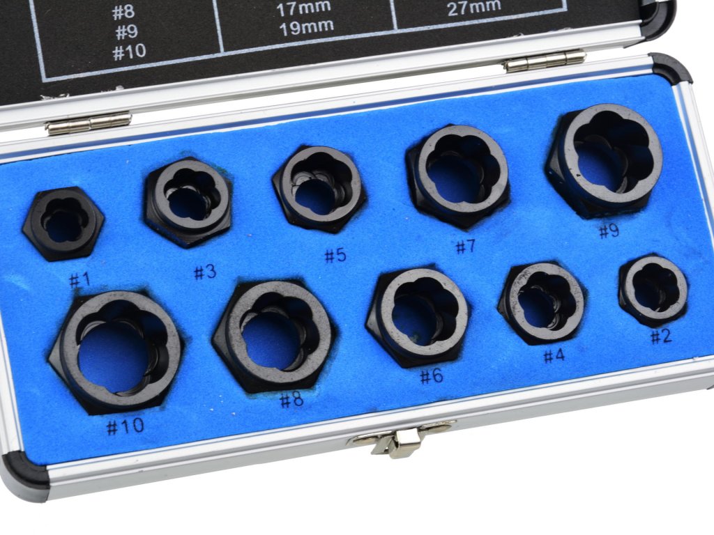 Hibás csavarokhoz való adapter készlet 9–19 mm méretű csavarok hatékony eltávolítására lett tervezve. Az adapterek különleges formája lehetővé teszi a csavaron való könnyű megfogást, ami megkönnyíti a sérült alkatrész eltávolítását.