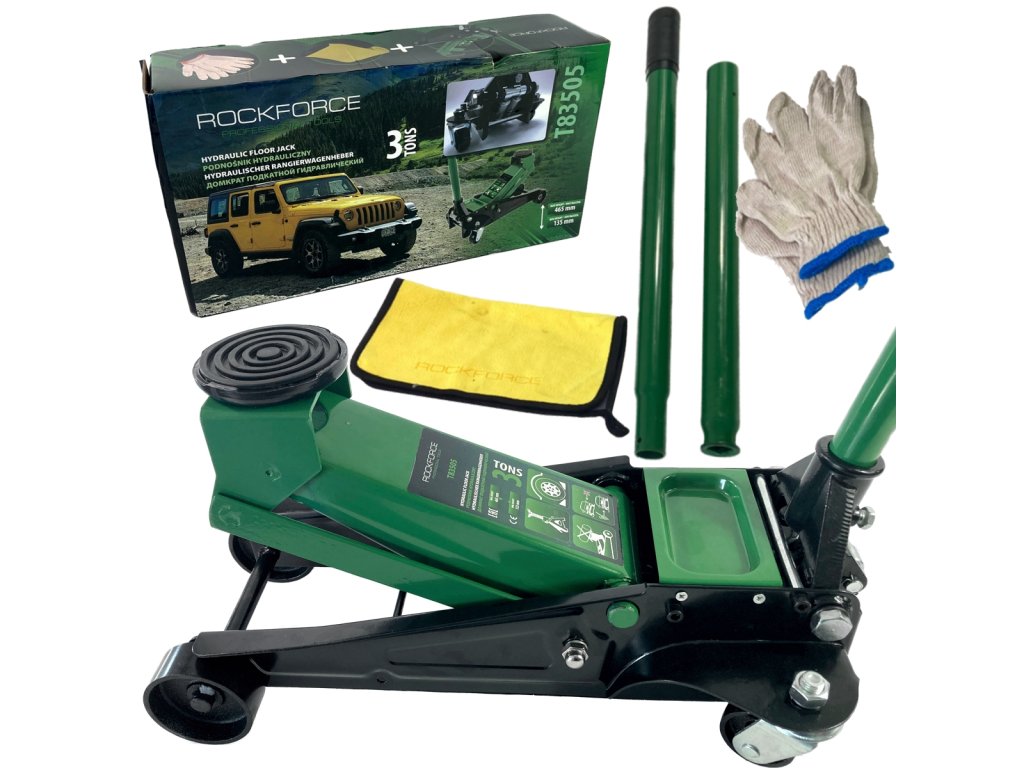 Hidraulikus, alacsony profilú emelő 3 t (béka) + gumi + mikroszálas kendő + kesztyű