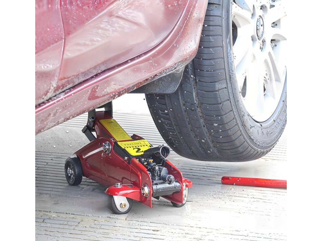 - Könnyű kezelhetőség: A nagy átmérőjű fém kerekek lehetővé teszik az emelő könnyű elhelyezését a jármű alatt, és kényelmes manőverezést biztosítanak egyenetlen felületeken is.