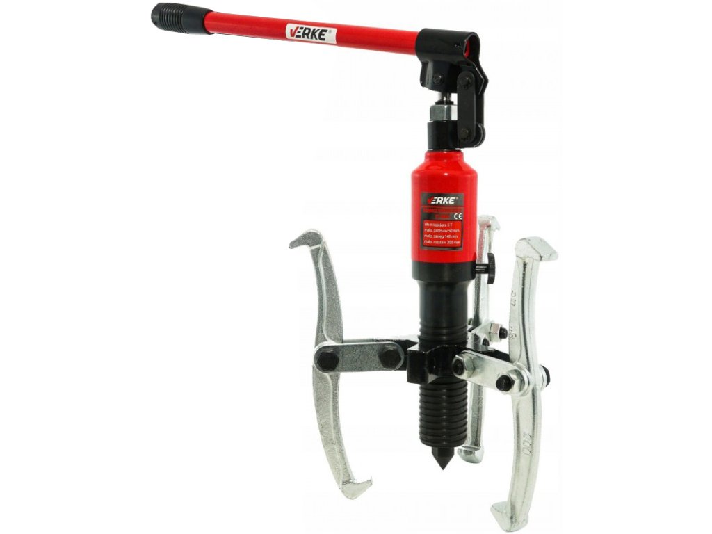 Hidraulikus lehúzó 5T VERKE ideális eszköz a csapágyak, fogaskerekek, agyak, hüvelyek és egyéb, tengelyre szorosan rögzített elemek szétszereléséhez. Hidraulikus felépítésének köszönhetően jelentős lehúzóerőt biztosít. A menetes lehúzókkal ellentétben nem generál forgatónyomatékot, amely az eszköz elcsúszásához vezethet. A kiváló minőségű hidraulikus hengereknek köszönhetően nem szükséges nagy erő, és a teljesítmény fokozatosan, erőfeszítés nélkül adódik át. A precíz kivitelezés és a strapabíró, kiváló minőségű anyagok garantálják az eszköz hosszú élettartamát és hibamentes működését. Lehetőség van 2 vagy 3 karos lehúzásra. Ideális minden mechanikai, forgácsoló és lakatos műhelyszolgáltatás számára, valamint elektromos motorok, sebességváltók, szivattyúk karbantartásához is.