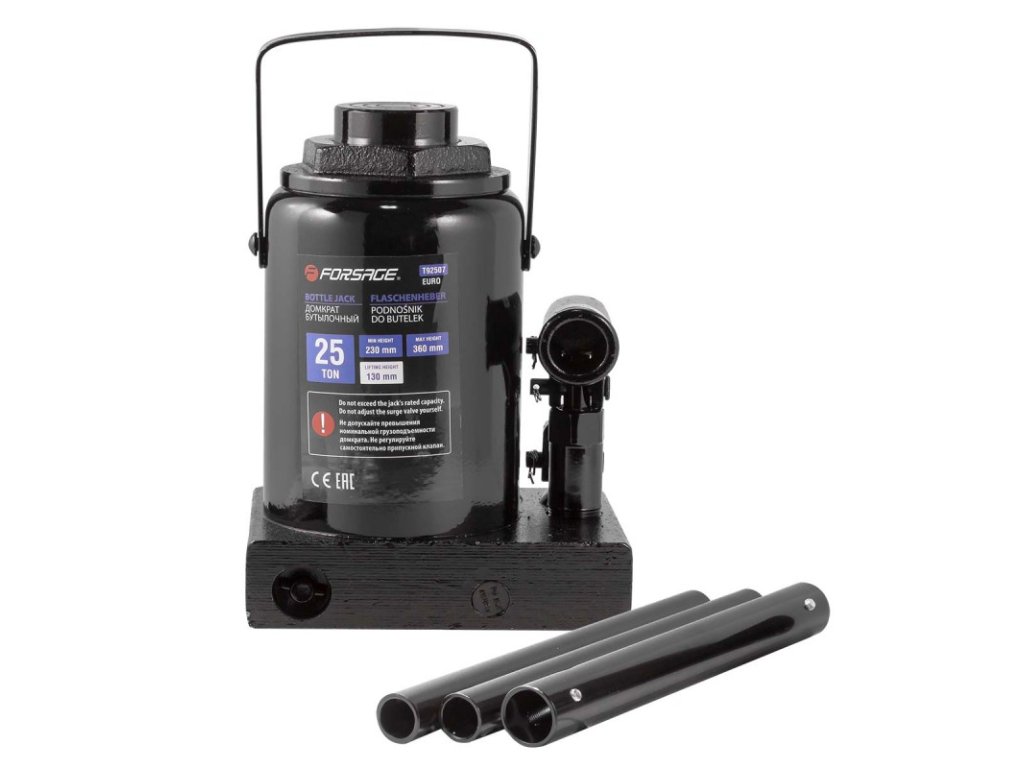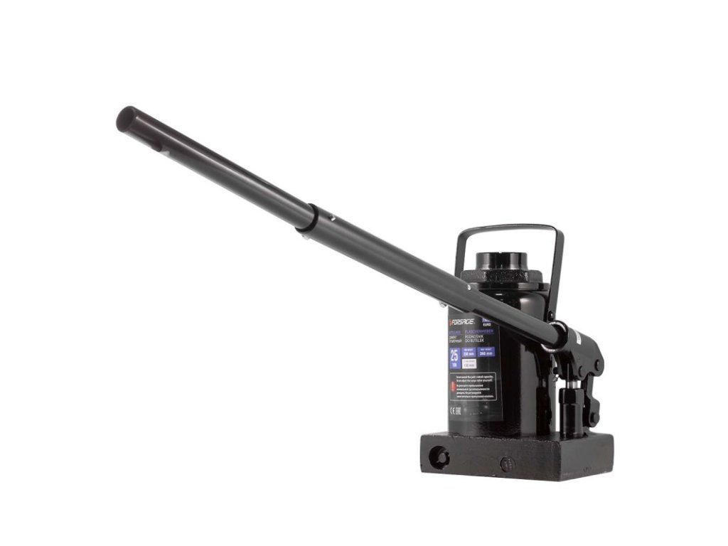 Az emelő kétrészes fogantyúval van felszerelve - az összecsukható rész sokkal könnyebbé teszi a járművek emelését.