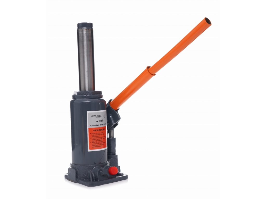 K Kraft&Dele márkájú hidraulikus palackemelő, KD1982 modell, oszlopos kivitelezésű, amely akár 6 tonnáig képes felemelni a teherakat. Ez az eszköz nélkülözhetetlen olyan feladatokhoz, amelyek nagy erő fokozatos kifejtését igénylik, például egy autó egyik oldalának vagy más gépnek a felemelésekor.