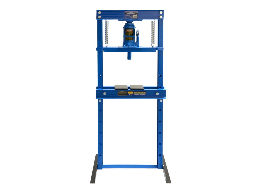Professzionális 12 tonnás hidraulikus prés ideális választás javító- és szervizműhelyek, ipari üzemek, valamint mezőgazdasági alkalmazások számára. Ez a prés úgy lett megtervezve, hogy kezelni tudja a tipikus műhelyi feladatokat, mint például az egyengetést, hajlítást, préselést, befogást és kiszorítást.