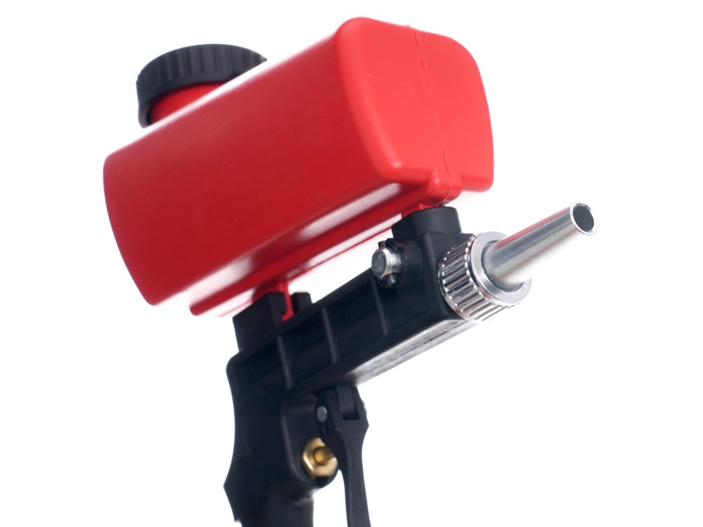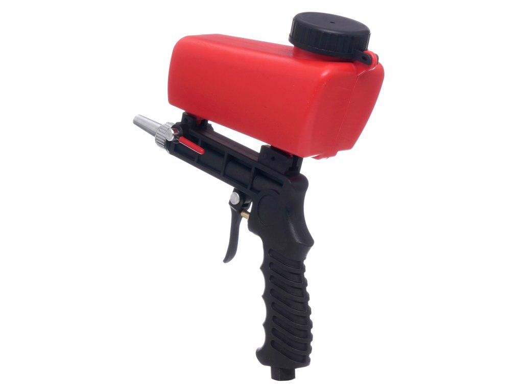 Homokfúvó pisztoly ideális eszköz a festékek, rozsdák és szennyeződések hatékony eltávolításához. Kiválóan alkalmas modellezési, lakkozási és egyéb hasonló munkákhoz. A kis fúvókának és a felső tartálynak köszönhetően a homok nagy sebességgel távozik, ami gyorsabb és eredményesebb tisztítást garantál. Ez a pisztoly különösen precíziós modellezési munkákhoz és kis felületek szennyeződéseinek eltávolítására lett tervezve.
