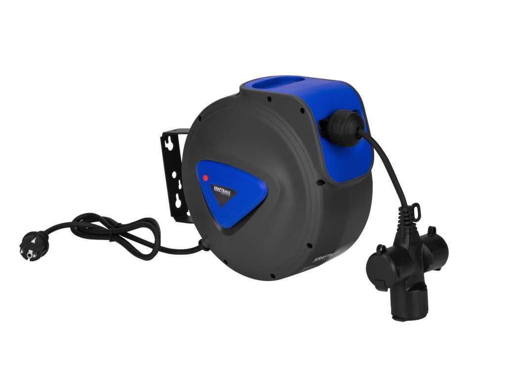 Automatikus tekercselő hosszabbító kábel, KD4045 modell a Kraft&Dele márkától, ideális felszerelés minden otthonhoz, műhelyhez és kerthez. Szilárd műanyag ház védi a kábelt, túlfűtés elleni védelemmel, gyermekbiztos dugaszoló aljzat gondoskodik a biztonságról. Falra szerelhető lehetőség. Vezetékek, kábelek, tömlők és egyéb eszközök összekapcsolására szolgál.