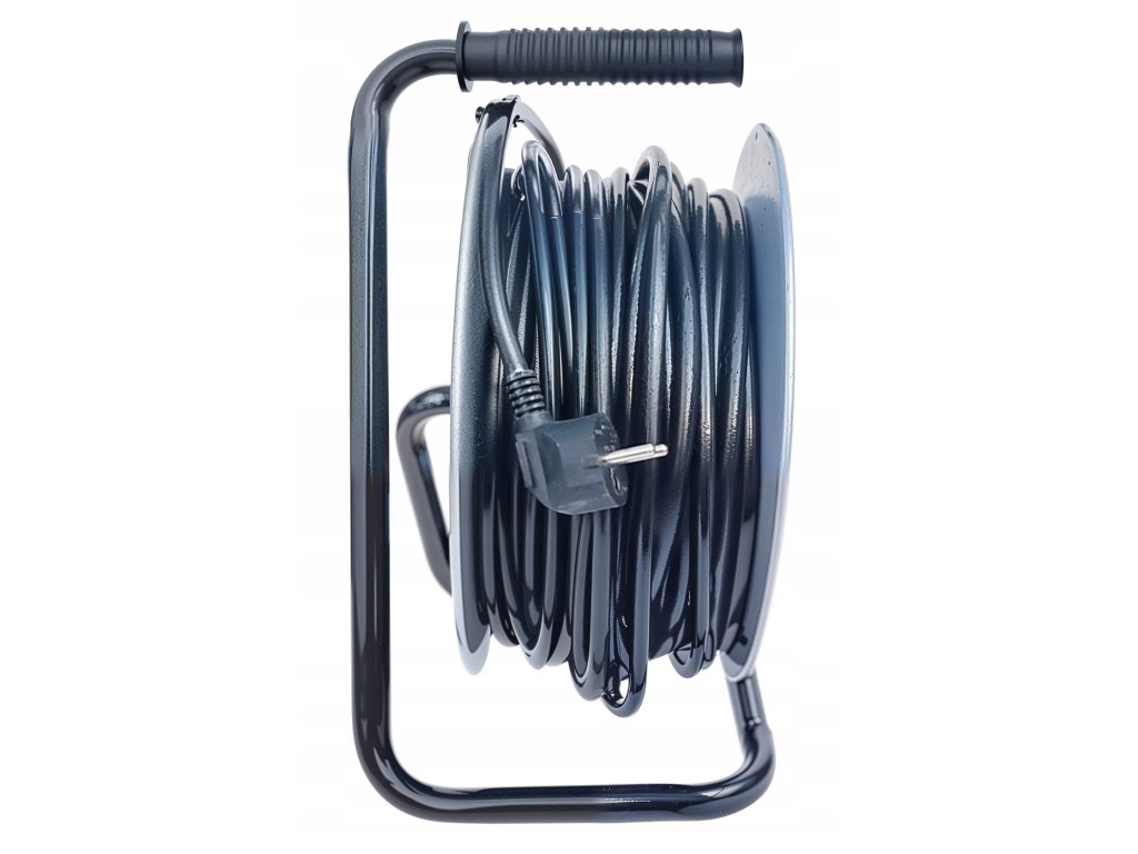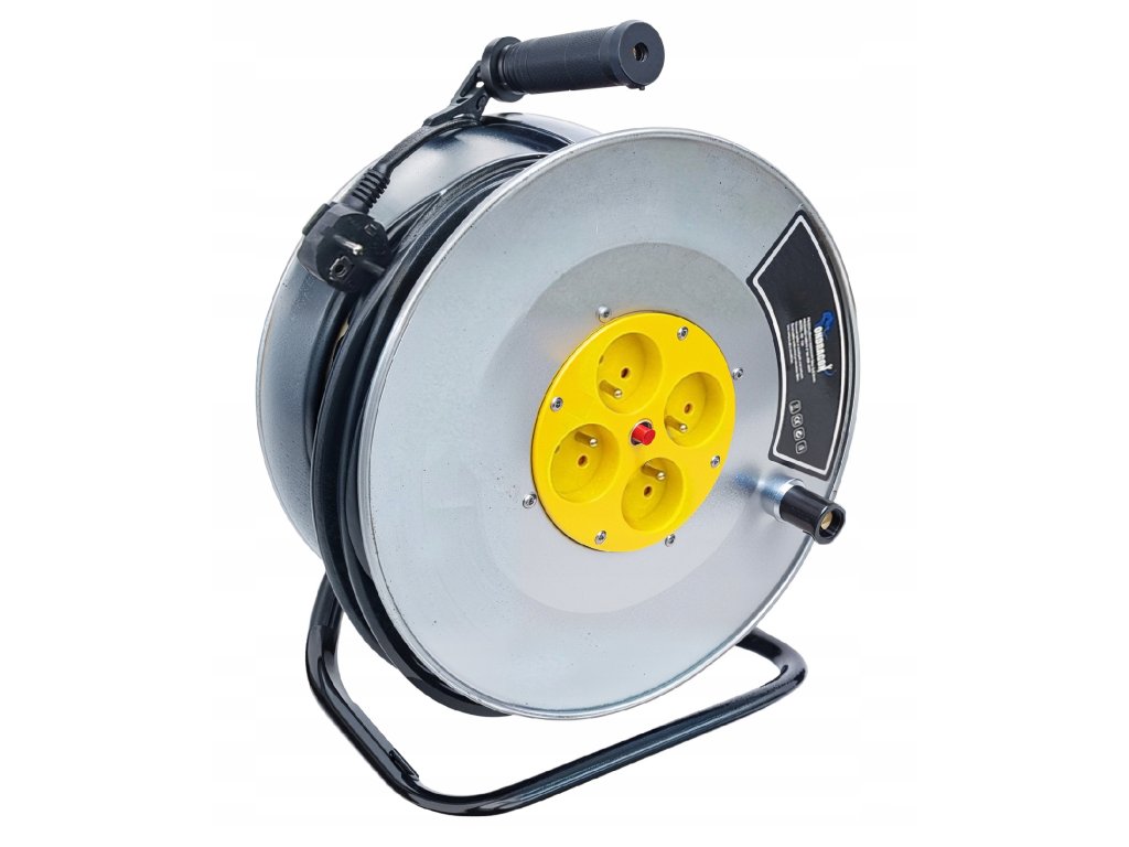 Hosszabbító kábel dobban 25m ideális megoldás építkezésekhez, műhelyekhez, kertekhez és otthonokhoz. Ez a hosszabbító kábel egy robusztus fém hengeren van feltekerve, amely négy földelt aljzattal és kapcsolóval van felszerelve, biztosítva a biztonságos és kényelmes használatot.