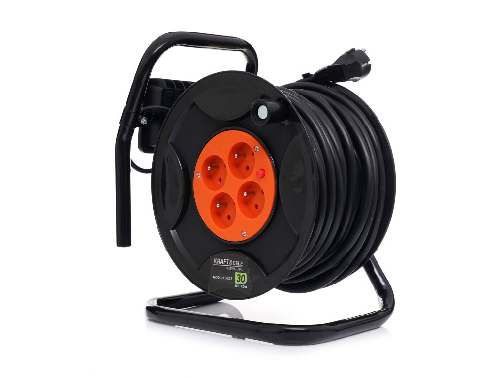 Hosszabbító kábel kábeldobon 30 m LED-del KD4037 a Kraft&Dele márkájú, kiváló eszköz a háztartási elektromos berendezések energiaellátásához, például elektromos fűnyíróhoz, autóban használható porszívóhoz és sok más készülékhez. Íme ennek a terméknek a fő specifikációk:
