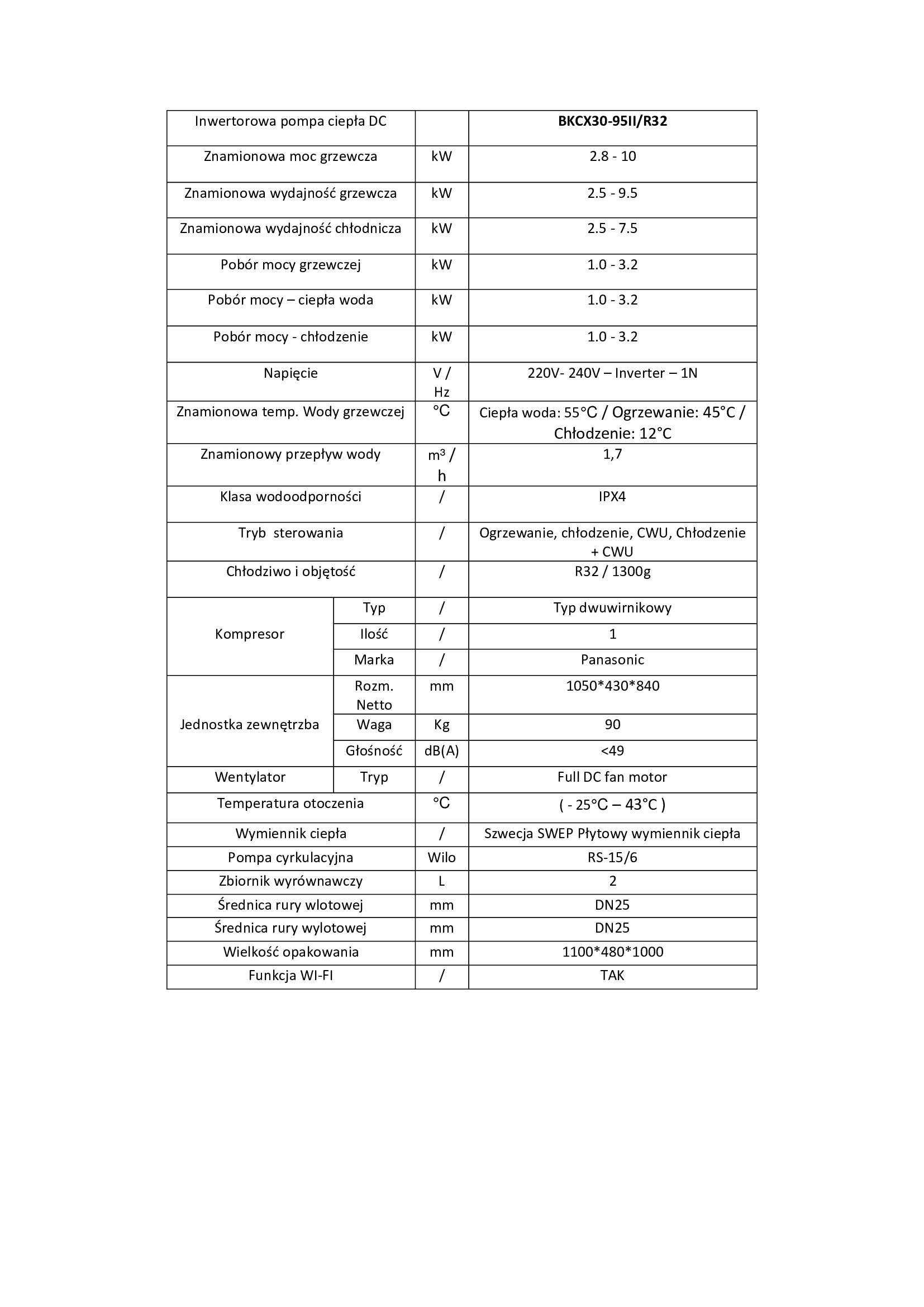 Hőszivattyú 10 kW NULITE Inverter BKDX30-95II/R32