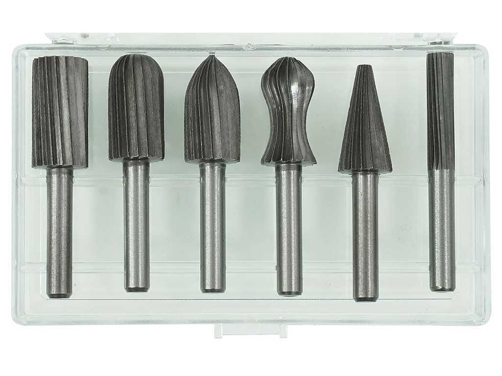 Fém marókészlet acél és alumínium megmunkálásához. Profilok széleinek megmunkálására, lyukak geometriai formálására, élek levágására, élletörésre és hegesztések feldolgozására készült. A kiváló minőségű, gyorsvágó acélból készült precíziós kidolgozás, 55-60 HRC keménységgel garantálja a kiváló minőséget és az anyag gyors vágását. Rögzítési rész átmérője: 6 mm. Teljes hossz: 55 mm. Munka rész hossza: 25 mm. Közvetlen fúrókkal (elektromos és pneumatikus egyaránt) való használatra.