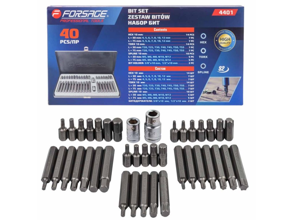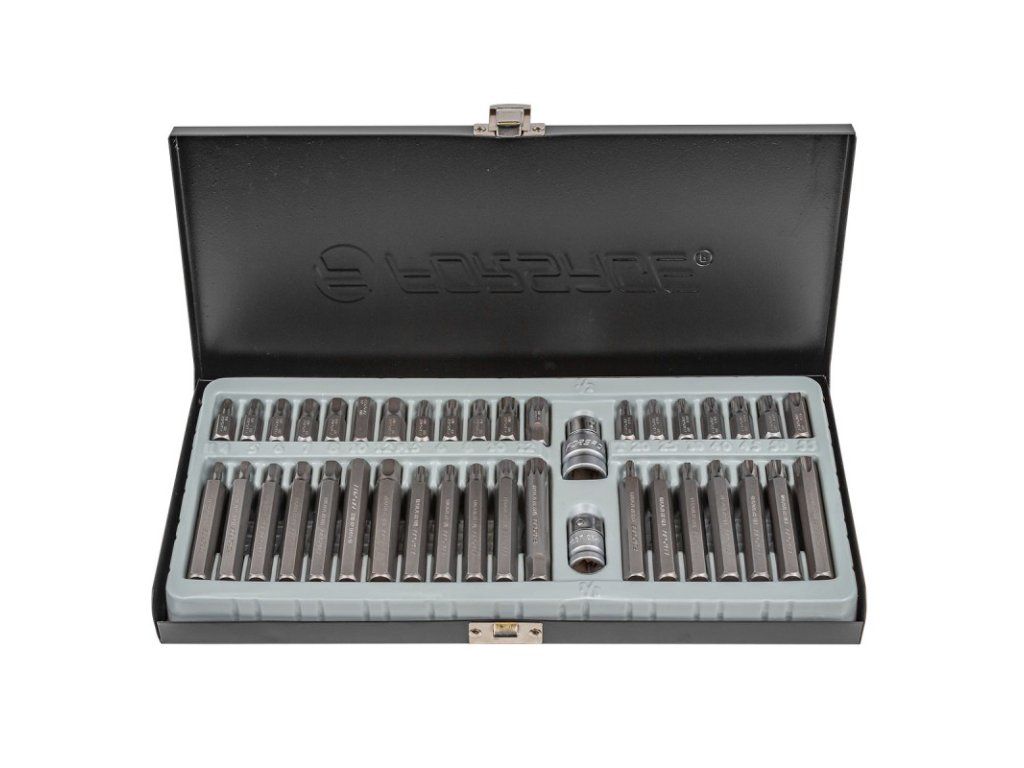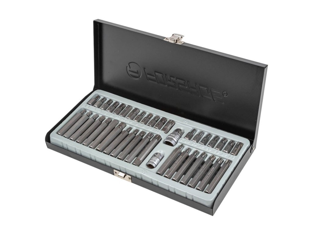 Professzionális bitkészlet, amelyet a következő típusú speciális csavarok kilazítására terveztek: imbusz, torx, spline. A bitek sokfélesége lehetővé teszi a széleskörű munkavégzést professzionális autószerelő műhelyekben és autószervizekben.