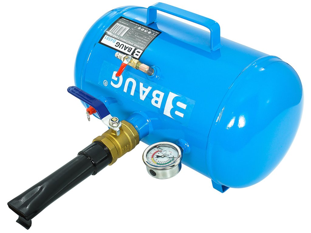 Inflátor - 21 L sűrített levegős tartály BAUG kiváló felszerelés gépjármű műhelyek és gumiszervizek számára. A felfújás nélküli gumik azonnali, impulzusos felfújására szolgál abroncsmonta közben. Az inflátorból kilövellt levegő segíti az abroncs tömítését a felnin, így a kerék a megadott nyomásra felfújható. Az inflátor személygépkocsik, haszongépjárművek és teherautók kerekeihez egyaránt használható.