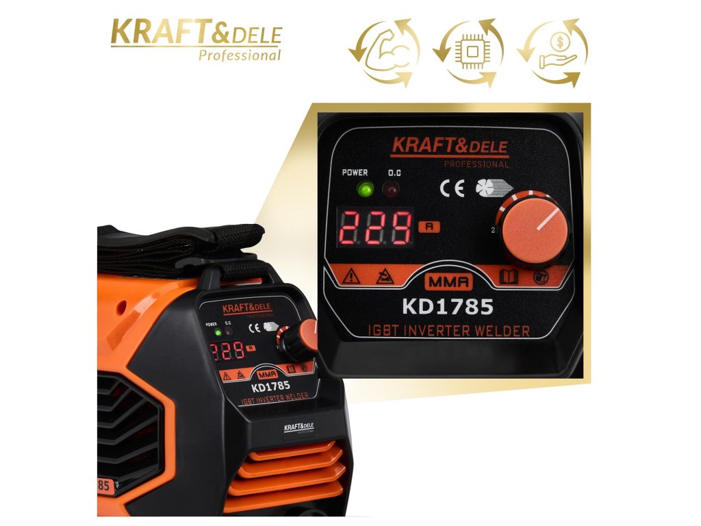 Modern inverteres hegesztőgép a Kraft&Dele gyártótól, KD1785-ös modell, bevont elektródás ívhegesztésre szolgáló készülék. A bevont elektródás ívhegesztés egy olyan ívhegesztési módszer, amely bevonattal ellátott olvadt elektróda használatával történik.