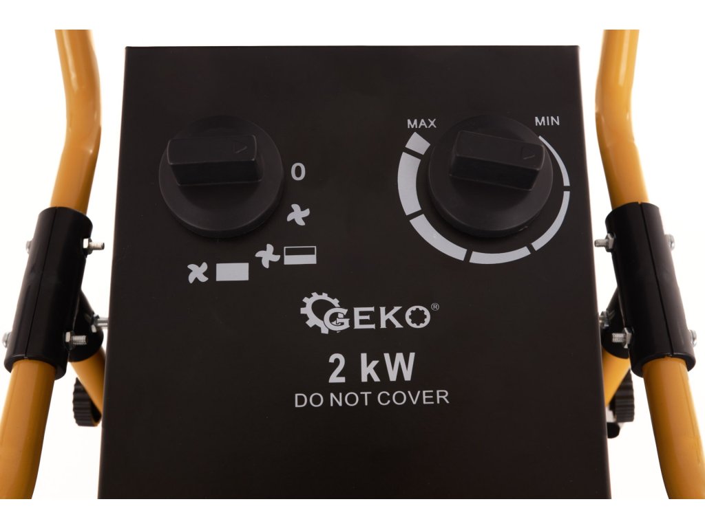 A termosztát lehetővé teszi a hőmérséklet pontos szabályozását, alkalmazkodva az aktuális igényekhez. A masszív fém konstrukció két kényelmes fogantyúval megkönnyíti a fűtőberendezés mozgatását, a fúvás szögének állítása blokkolással pedig kényelmes használatot biztosít.