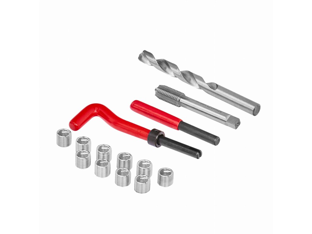 A készlet mindenféle anyagban lévő menetkapcsolatok javítására szolgál. A sok alkatrésznek köszönhetően nagyon sokoldalú.