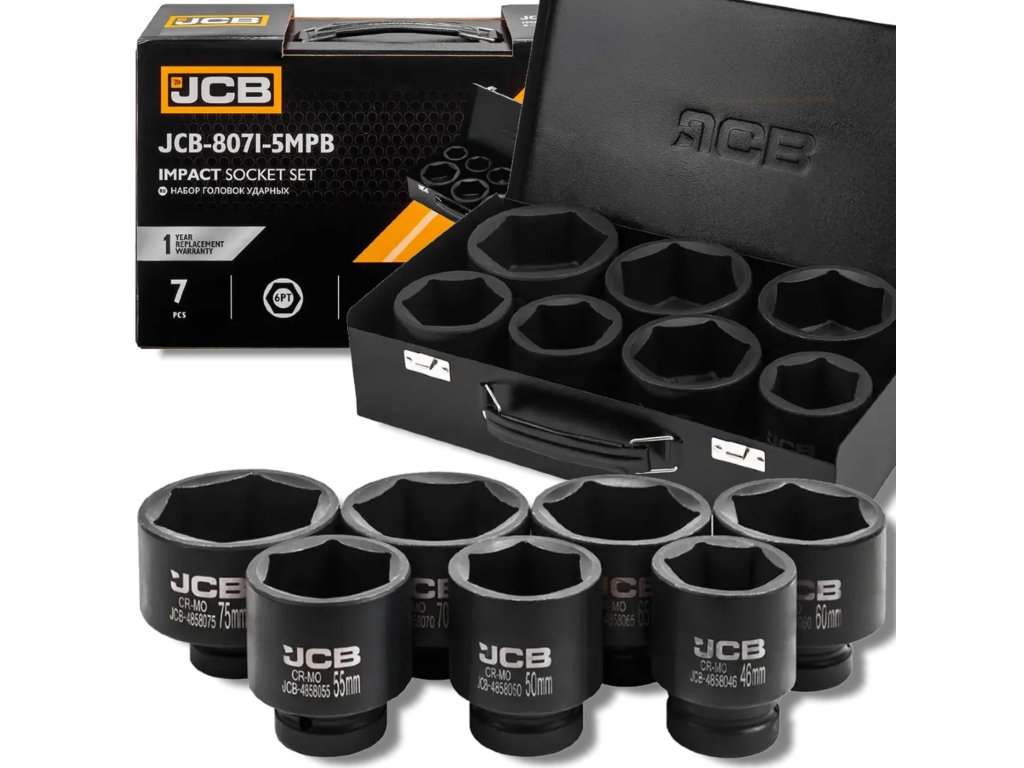 JCB 1" Cr-Mo 6 pontos dugókulcs készlet, 7 részes, 46-75 mm