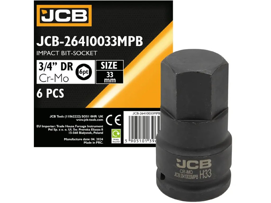 JCB 3/4"-os (38 mm-es) ütvecsavarozó, 6-pontos, Cr-Mo, bitekhez