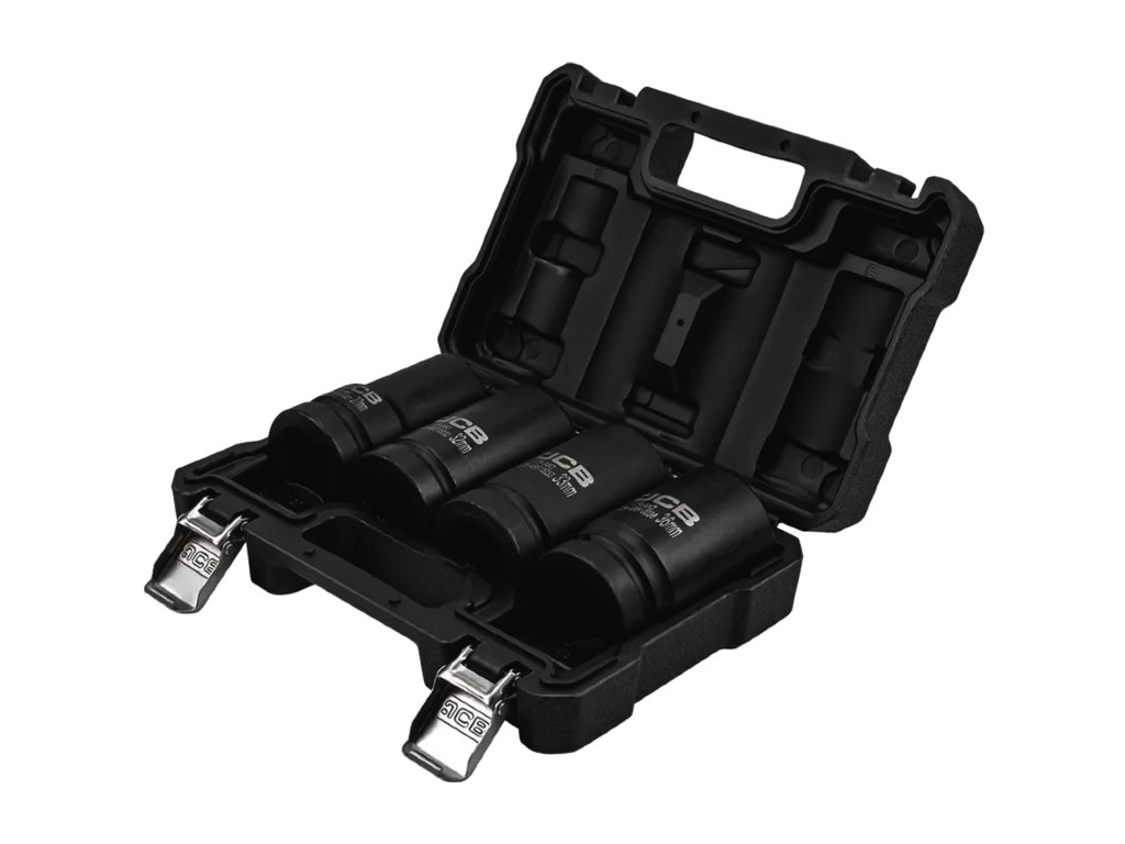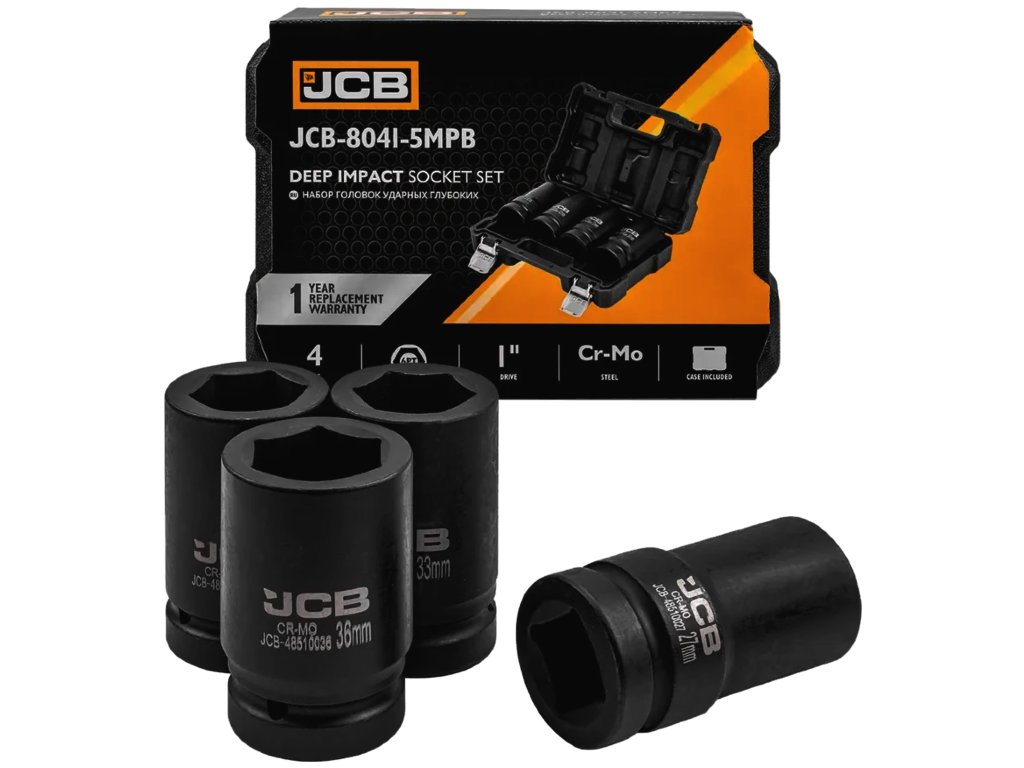 A JCB Tools 4 részes mélyhúzó dugókulcs készlet egy professzionális szerszám, amelyet intenzív műhelyi munkákhoz terveztek, beleértve a csavarok és anyák összeszerelését és szétszerelését ütvecsavarozókkal.